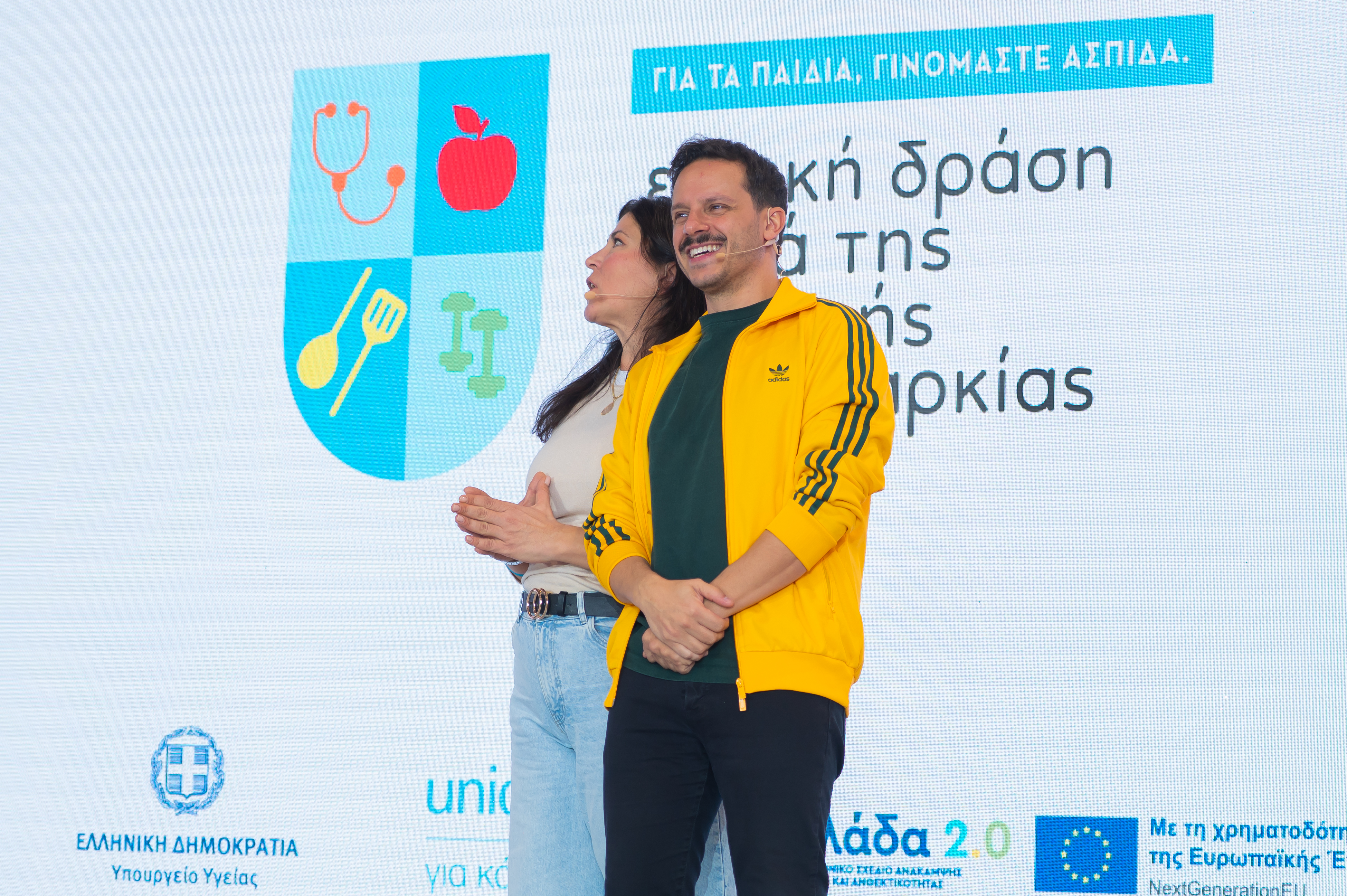 Τους μαθητές υποδέχτηκαν ο Δημήτρης Μακαλιάς και η Ελευθερία Μπενοβία, παρουσιάζοντας την Εθνική Δράση κατά της Παιδικής Παχυσαρκίας, ενώ ο σεφ Γαβριήλ Νικολαΐδης ετοίμασε μαζί με τα παιδιά γευστικές και υγιεινές συνταγές. Παράλληλα, η διαιτολόγος- διατροφολόγος Φανή Πρεβέντη μοιράστηκε έξυπνες συμβουλές για μια πιο ισορροπημένη διατροφή.