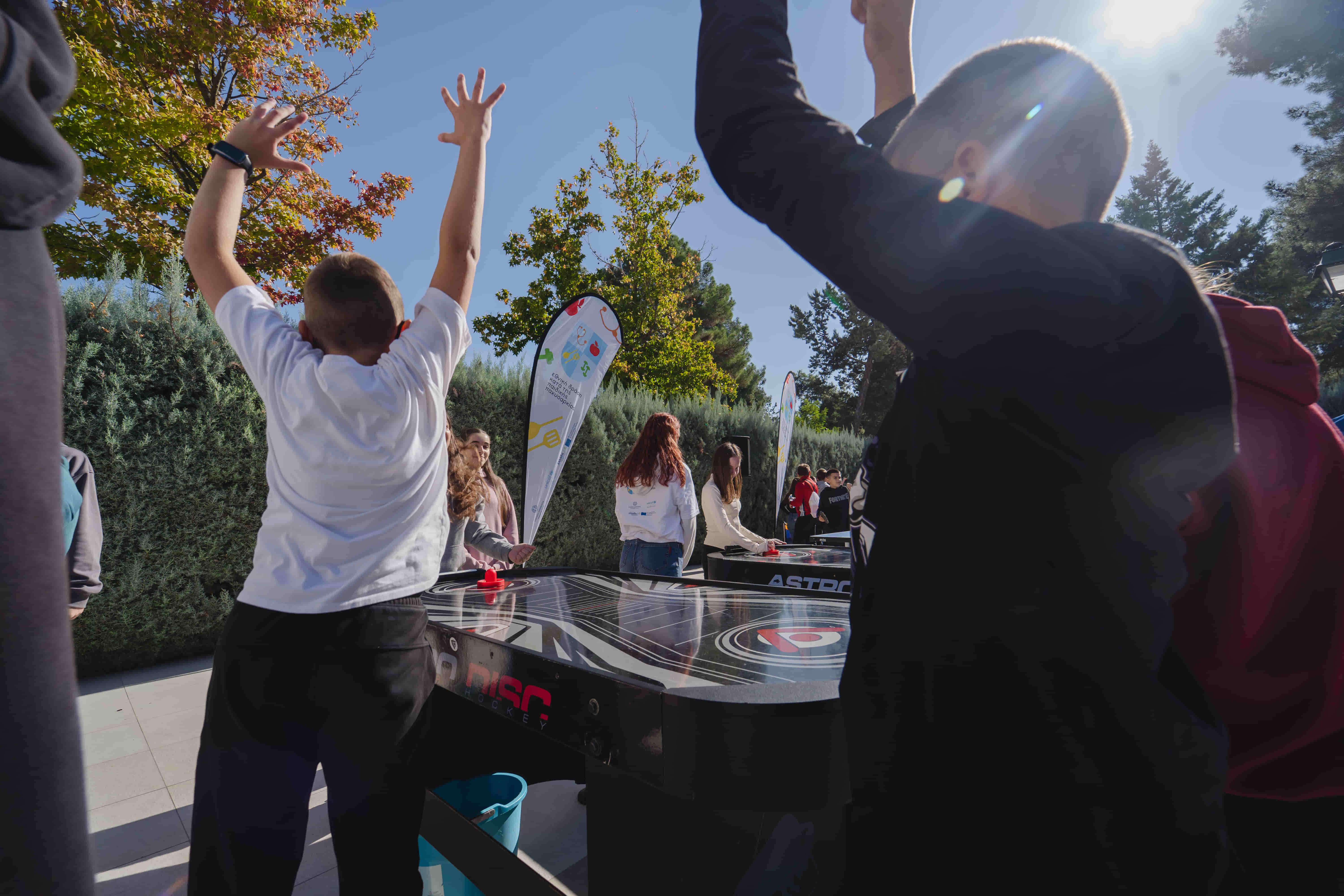 Τα παιδιά είχαν την ευκαιρία να συμμετάσχουν σε αθλητικές δραστηριότητες, όπως μπάσκετ, πινγκ-πονγκ, επιτραπέζιο χόκεϊ, τοίχο αναρρίχησης και πίστα εμποδίων, καθώς και να μάθουν περισσότερα για το εκπαιδευτικό υλικό του Προγράμματος μέσα από διαδραστικά παιχνίδια με το «The Why Community» και «Το Ταξίδι της Τροφής» με το «ΜΠΟΡΟΥΜΕ».