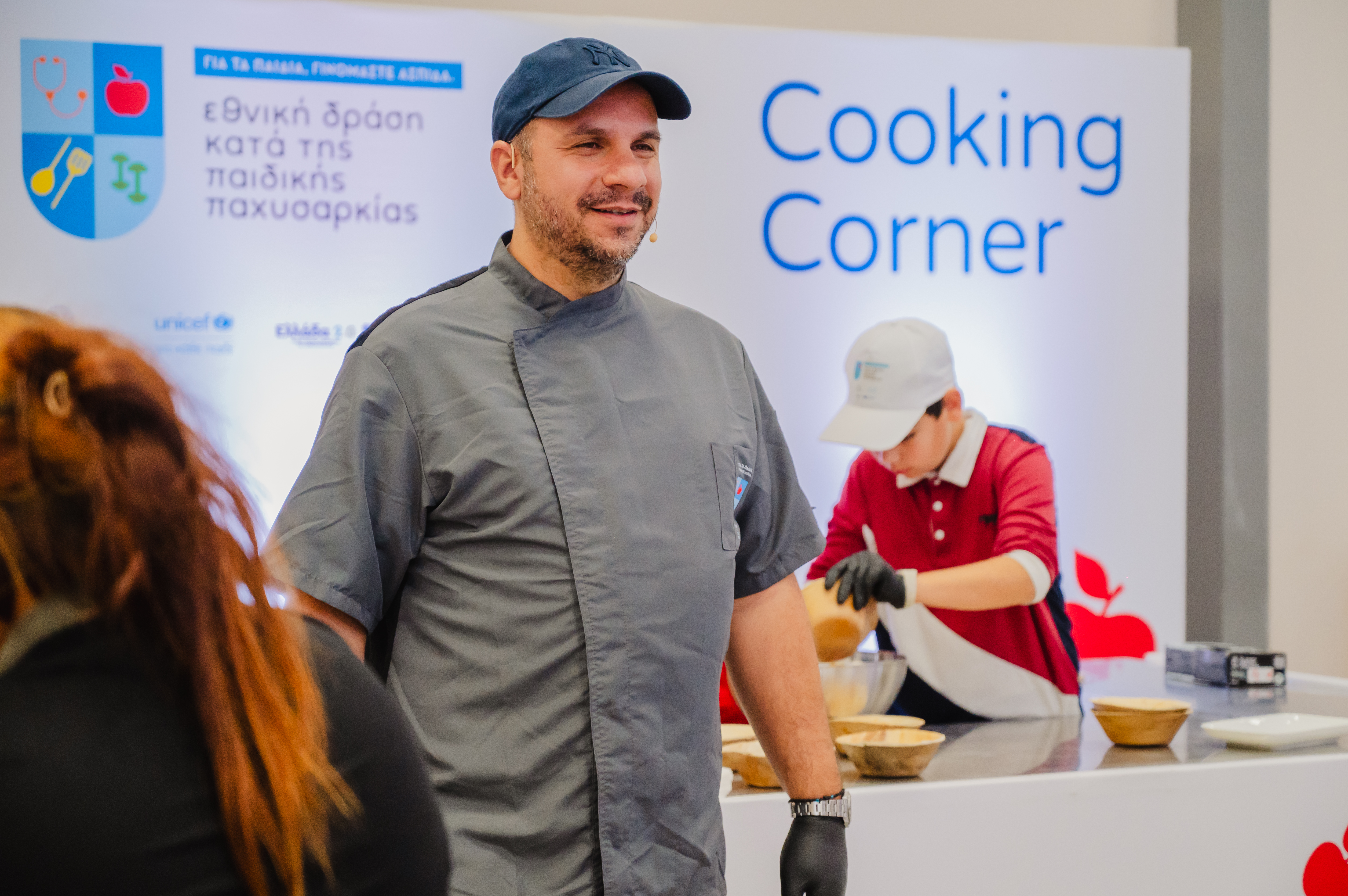Τους μαθητές υποδέχτηκαν ο Λευτέρης Ελευθερίου παρουσιάζοντας την Εθνική Δράση κατά της Παιδικής Παχυσαρκίας, ενώ ο σεφ Τάσος Αντωνίου ετοίμασε μαζί με τα παιδιά γευστικές και υγιεινές συνταγές.